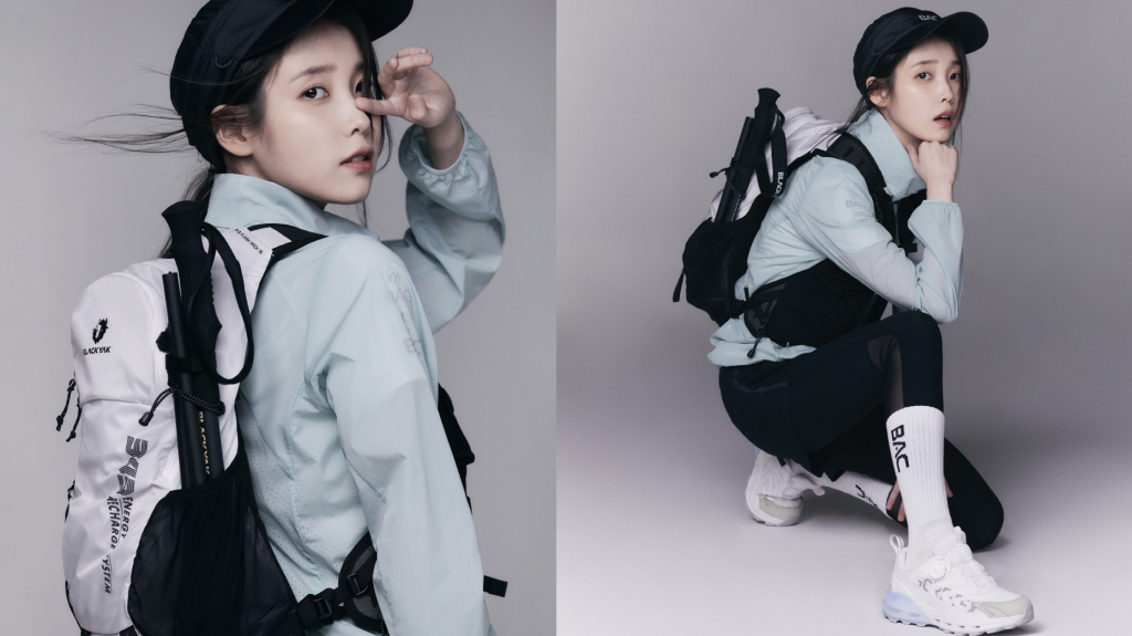 아이유는 3월 20일 공개된 아웃도어 블랙야크 화보에서 고요하고 차분한 무드 속 다양한 스타일링을 선보였다.