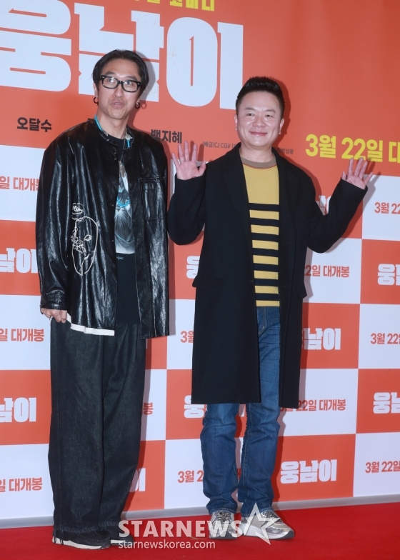 연예방송빽가-김태균 '웅남이 최고'[★포토]발행 : 2023.03.20 ・ 20:52이동훈 기자가수 뺵가, 코미디언 김태균이 20일 서울 CGV 용산아이파크몰에서 진행된 영화 '웅남이'(감독 박성광) VIP시사회에 참석해 포즈를 취하고 있다. 반달곰이라는 특별한 '비밀'을 가진 사나이가 특유의 짐승 같은 능력으로 국제 범죄 조직에 대항하여 공조 수사를 하며 벌어지는 코믹 액션 '웅남이'는 오는 22일 개봉한다. /2023.03.20<저작권자 © 스타뉴스, 무단전재 및 재배포 금지>웅남이추천 기사이동훈 기자기자홈좋아요 연예-방송의 인기 급상승 뉴스연예-방송의 최신 뉴스