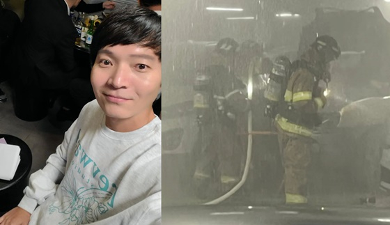 신정환은 23일 "방송 중 주차장에 불이 났다는 연락을 받았다. (방송) 중단 후 소방차 여러 대가 와서 완벽히 (불을) 껐다. 전기차로 오해해서 미안"이라는 글과 사진을 올렸다.