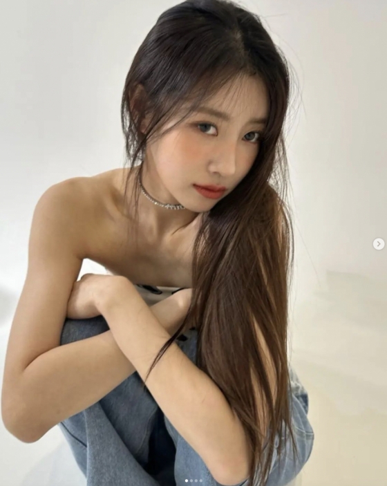 공개된 사진 속 이미주는 튜브톱 의상으로 과감히 어깨 라인을 드러냈다. 이미주는 새침한 표정을 지어 보였다.
