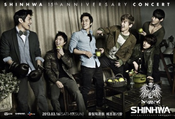 공개된 사진은 신화 데뷔 15주년 기념 콘서트 포스터다. 포스터 속에는 서로를 바라보며 웃고 있는 멤버들의 모습이 담겼다.