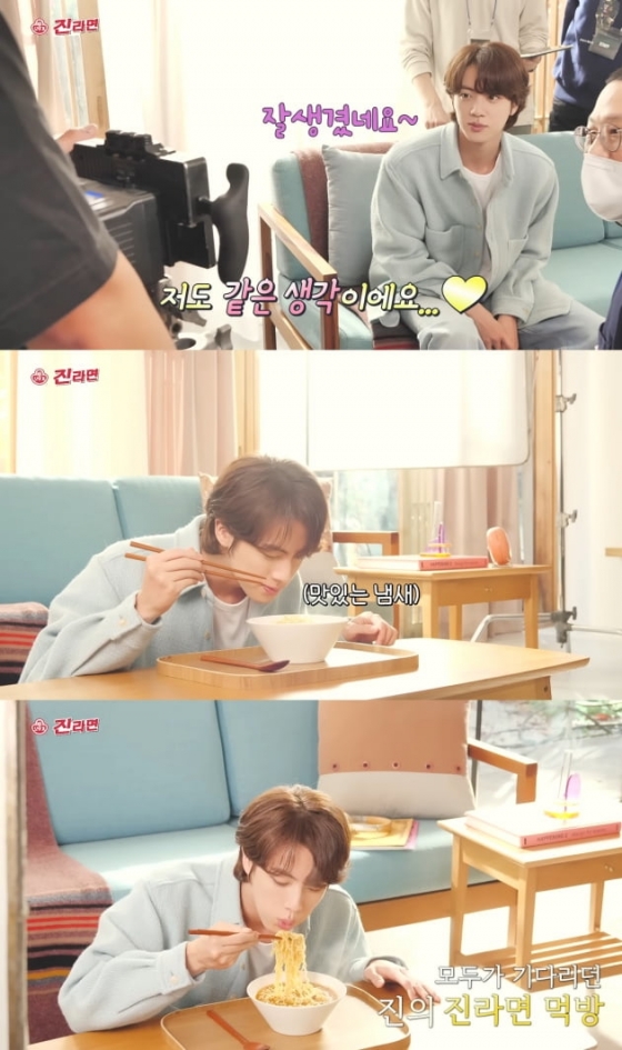 지난해 11월 11일 공식 유튜브 채널을 통해 공개된 진라면 CF 영상에서 진은 조각 같은 미모로 깔끔하고 우아한 라면 먹방을 선보였다. 매력적인 광고 연기로 눈길을 사로잡은 진은 '진심이 닮았다'라는 메시지를 완벽하게 전달, 광고로서 이례적으로 영상 2편이 각각 유튜브 인기 동영상 9위와 11위에 오르는 등 팬과 대중들에게 폭발적인 반응을 이끌었다.