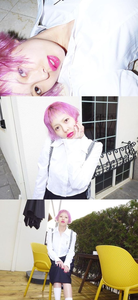 [김노을 스타뉴스 기자] 가수 현아가 금발에서 핑크색 헤어로 변신했다.