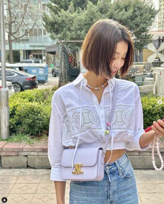 공개된 사진 속 이시영은 짧은 단발머리를 하고 휴대폰을 바라보며 미소 지었다. 이시영은 흰색 크롭 셔츠로 날씬한 몸매를 자랑했다.