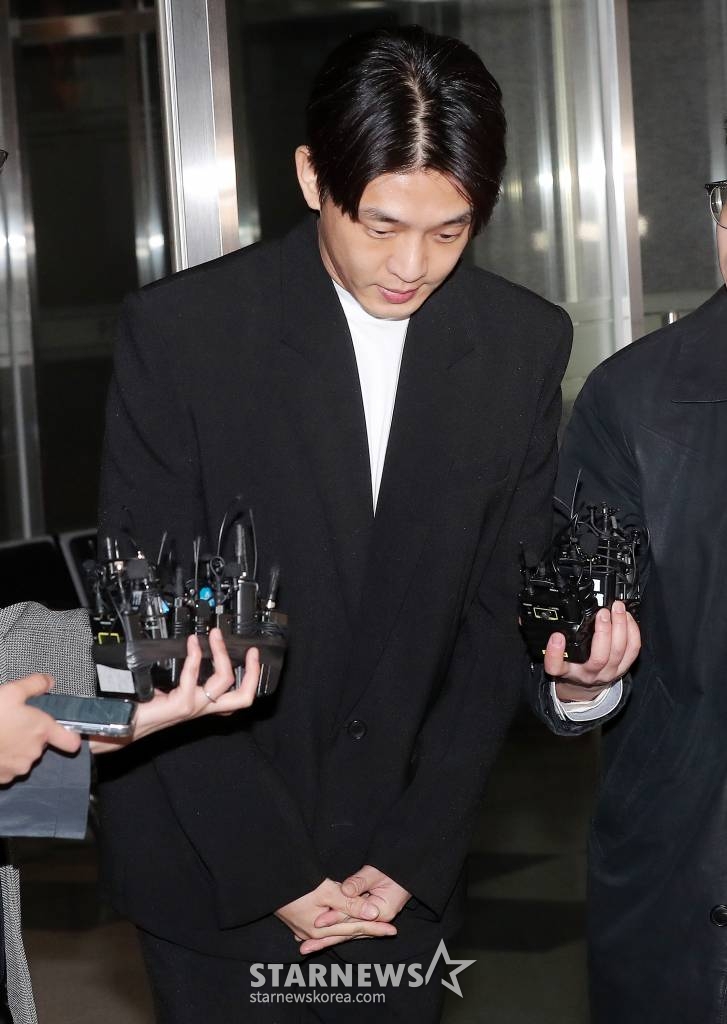 이날 유아인은 검은색 정장을 입고 취재진 앞에 등장했다. 초호화 변호인단과 대동한 그는 수척해진 얼굴로 조사실에 들어갔다. 당시 그는 취재진의 질문에 별다른 대답을 하지 않았다.