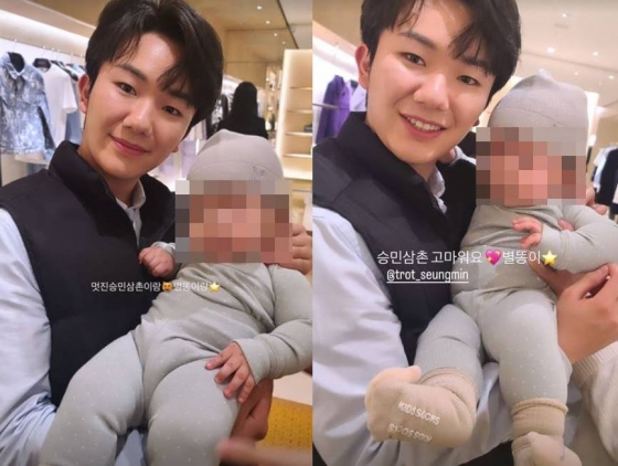장미인애는 추가로 자신의 아들 '별똥이'가 트로트 가수 남승민과 만난 인증샷을 공개하기도 했다. 장미인애는 "멋진 승민 삼촌이랑", "승민 삼촌 고마워요"라고 멘트를 붙였다.
