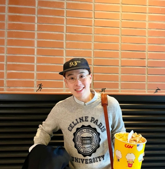 공개된 사진 속 피오는 팝콘을 들고 환하게 웃고 있다. 특히 그는 이전보다 살 빠진 모습으로 늠름한 분위기를 보였다.