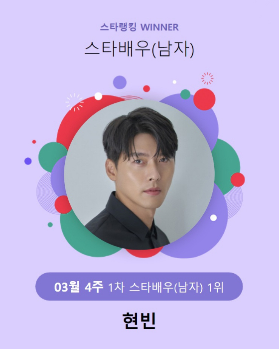 현빈은 3월 23일 오후 3시 1분부터 3월 30일 오후 3시까지 진행된 3월 4주 스타배우 남자 랭킹 투표(1차)에서 1위에 등극했다.