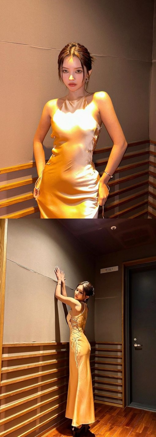 [이지현 스타뉴스 인턴 기자] 그룹 (여자)아이들 멤버 전소연이 드레스를 입고 섹시한 자태를 뽐냈다.