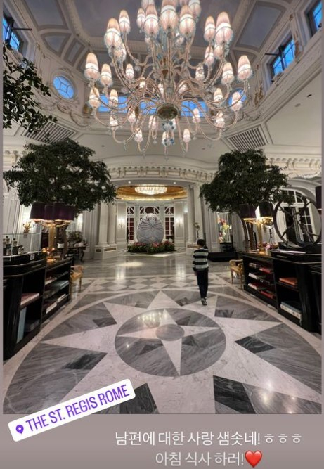 이어 강수정은 해시태그로 #이탈리아 #로마여행 #트레비분수 #판테온신전 #italy #rome"이라고 달았다.