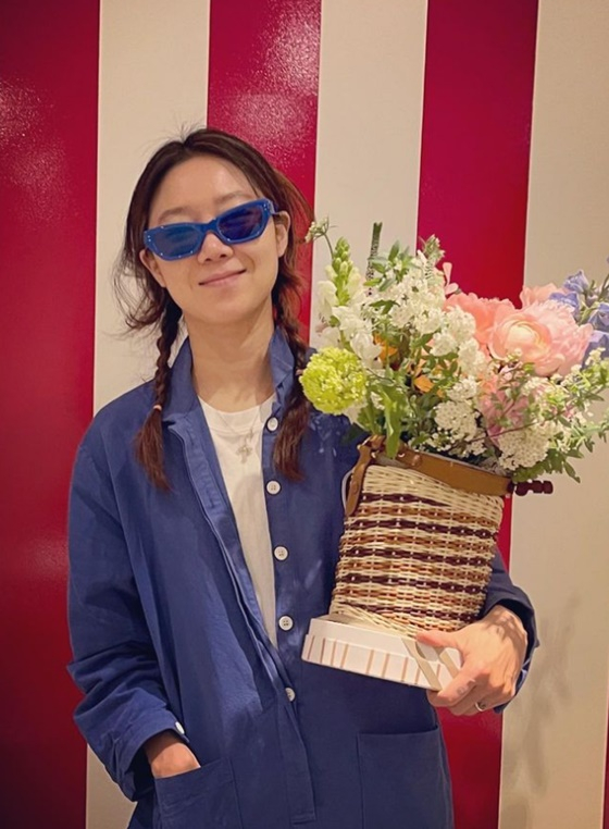 또한 공효진은 선물받은 것으로 보이는 화사한 꽃바구니를 품에 안고 있다.