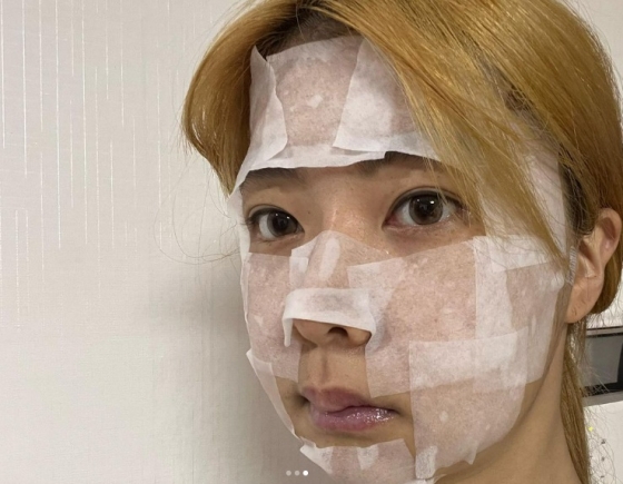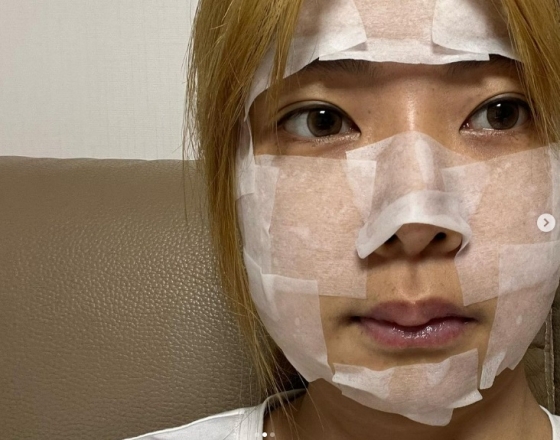 사진에는 영자가 스킨을 적신 화장솜 여러개를 얼굴에 올리고 팩을 하는 모습이 담겨 있었다. 최근 양악수술 근황을 밝혔던 영자는 이전보다 부기가 빠진 얼굴을 보였다.
