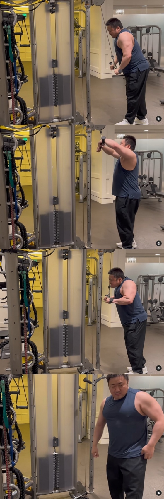 마동석은 남다른 팔뚝을 자랑하며 편안한 모습으로 운동, 눈길을 사로잡는다.