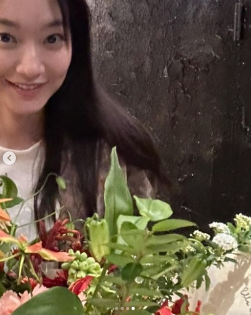 배우 신민아가 예쁜 꽃다발을 자랑했다.