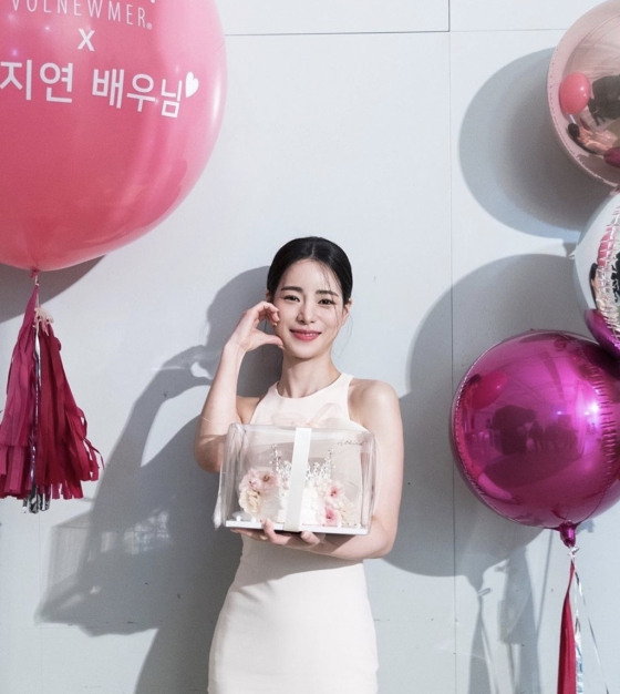 공개된 사진 속 임지연은 한 손으로 케이크를 들고 볼 하트 포즈를 취했다. 임지연은 하얀색 초밀착 원피스로 슬림한 몸매를 자랑했다.