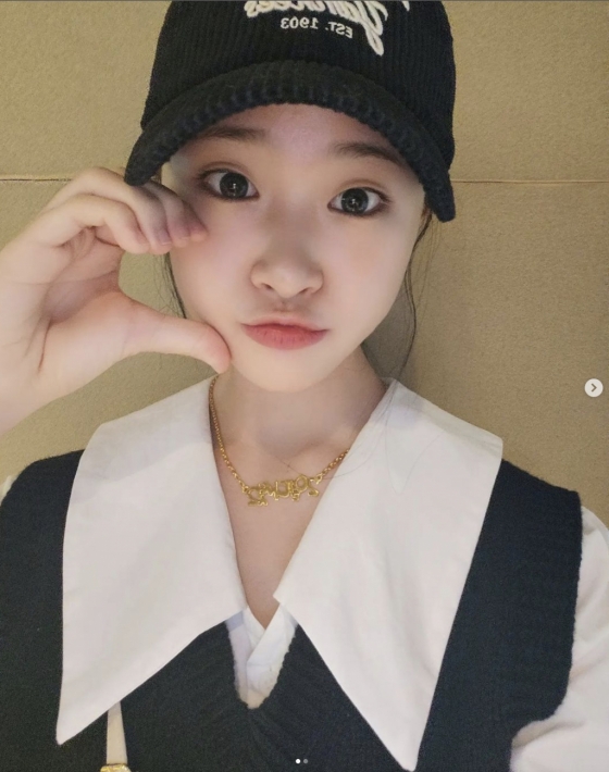 공개된 사진 속 김다현은 흰색 셔츠에 검은색 니트 조끼를 입고 볼하트 포즈를 취했다. 김다현은 귀여운 표정으로 시선을 끌었다.