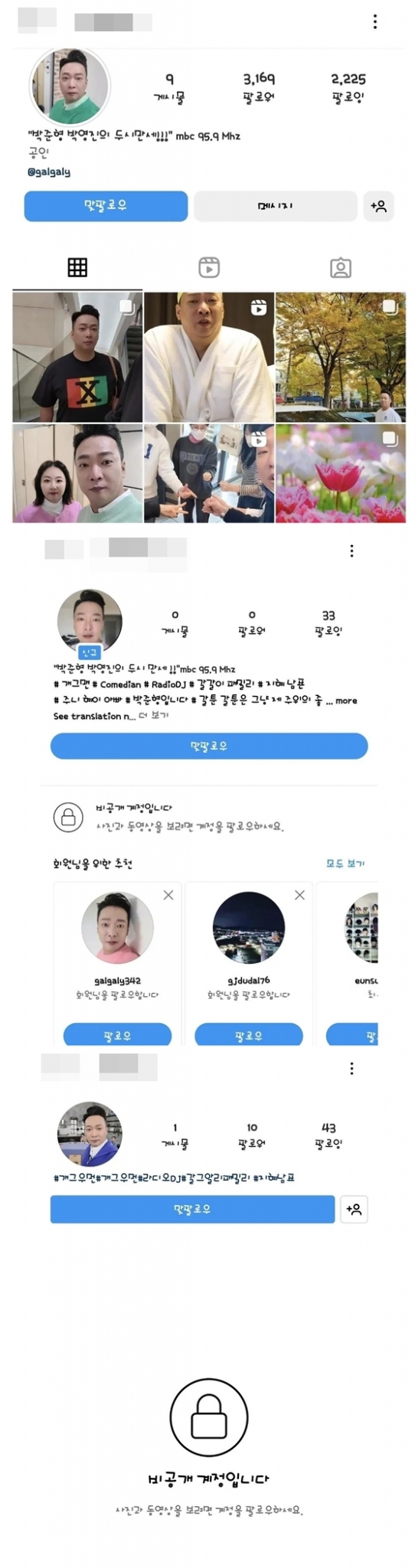 박준형은 "나는 스타가 아니야. 좀 알고 사칭해줘 제발"이라며 "속지마삼. 갈블리. 첫번째 쟤는 팔로워도 많이 모았네. 놀랍다 진짜"라고 했다.