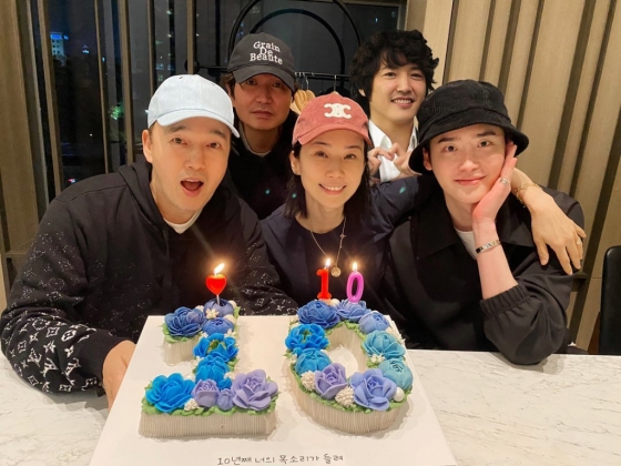 공개된 사진 속에는 '10'이라고 적힌 케이크 앞에서 포즈를 취하고 있는 이종석, 이보영, 김광규 등의 모습이 담겼다. 이들은 드라마 '너의 목소리가 들려' 방송 10주년을 축하하기 위해 모인 것으로 보인다. 특히 불참한 윤상현의 모습까지 합성하며 끈끈한 관계를 자랑했다.