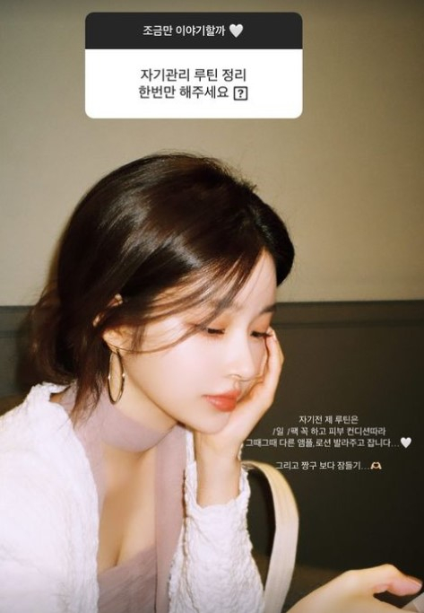 유혜원은 자신의 루틴에 대해 "1일 1팩 꼭 하고 피부 컨디션 따라 그때그때 다른 앰플 로션 발라주고 잡니다. 그리고 짱구 보다 잠들기"라고 답했다.