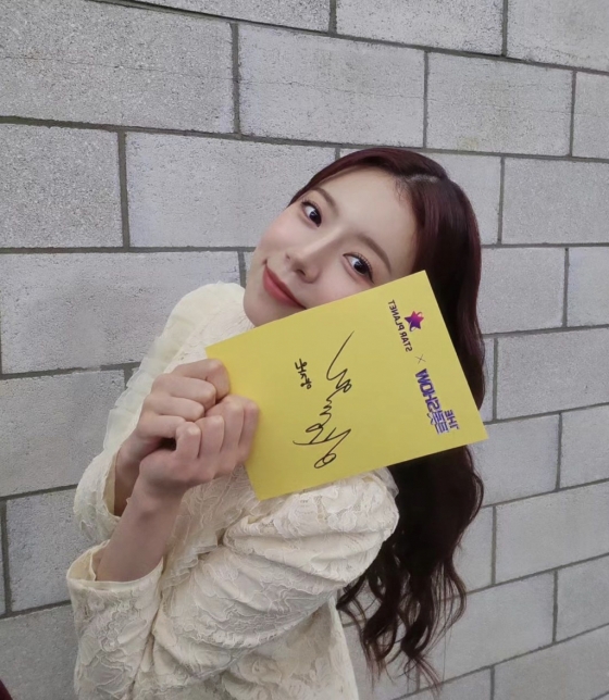 공개된 사진 속 양지은은 '더트롯쇼'가 적힌 노란색 종이를 양손으로 쥐고 상큼한 표정으로 팬들의 마음을 사로잡았다.