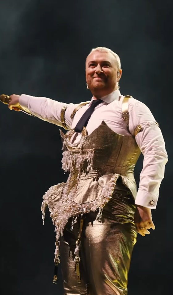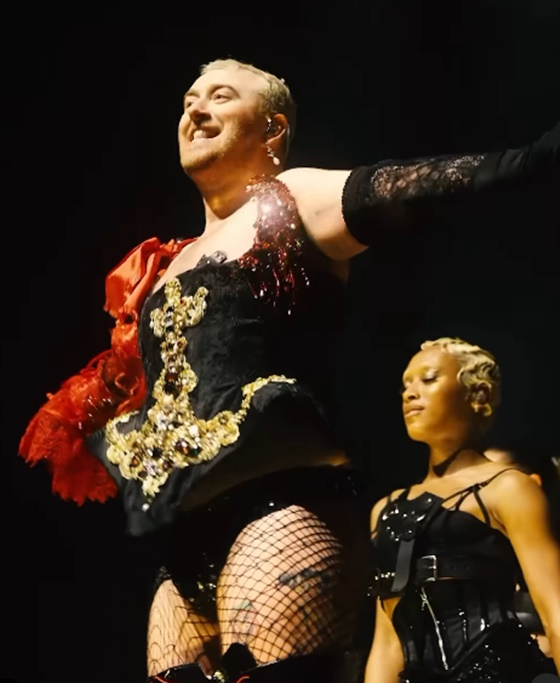 샘 스미스는 최근 자신의 사회관계망서비스에 투어 공연에 오른 자신의 모습을 공개하기도 했다. 공개된 사진에는 망사, 코르셋 등 난해한 옷을 착용한 샘 스미스의 모습이 담겼다.