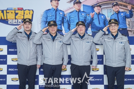 연예방송'시골경찰 리턴즈, 기대하세요'[★포토]발행 : 2023.04.19 ・ 15:31이동훈 기자안정환, 김용만, 정형돈, 김성주가 19일 오후 온라인으로 진행된 MBC에브리원 예능 '시골경찰 리턴즈' 제작발표회에 참석해 포즈를 취하고 있다. /사진제공=MBC에브리원 2023.04.19<저작권자 © 스타뉴스, 무단전재 및 재배포 금지>시골경찰리턴즈추천 기사이동훈 기자기자홈좋아요 연예-방송의 인기 급상승 뉴스연예-방송의 최신 뉴스