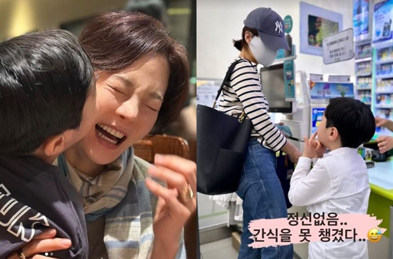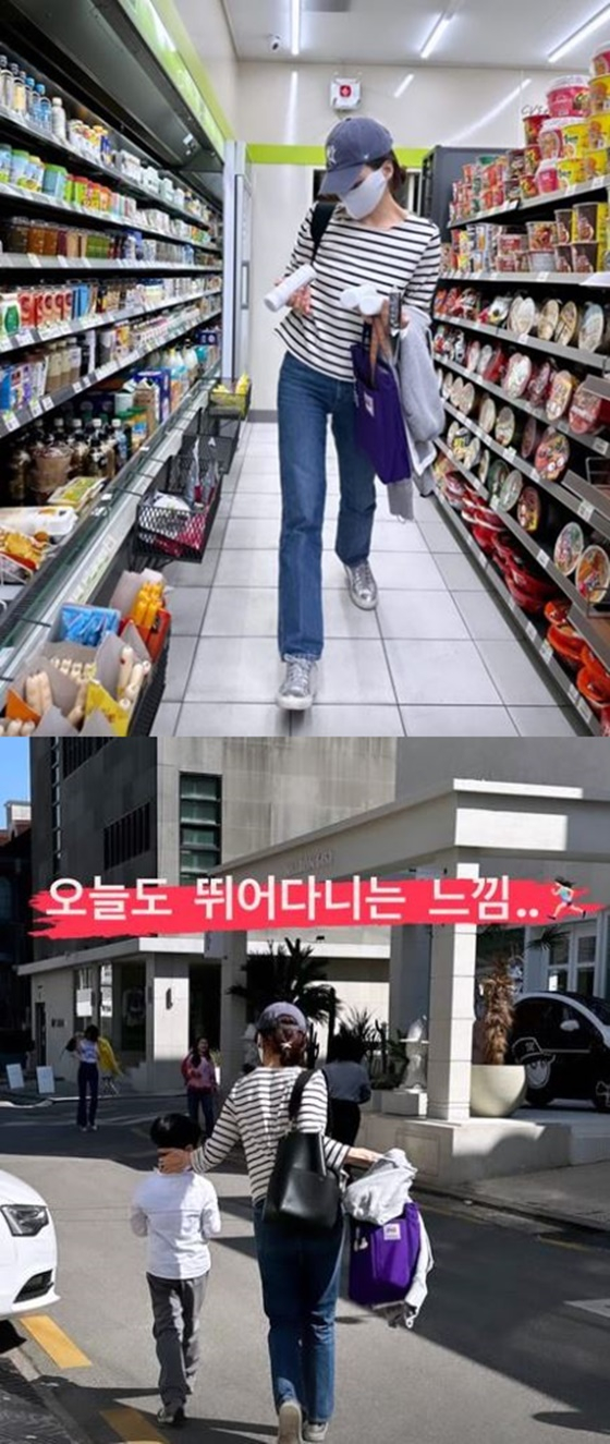 공개된 사진에는 아들의 간식을 챙기기 위해 편의점을 찾은 채림의 모습이 담겨 있다.