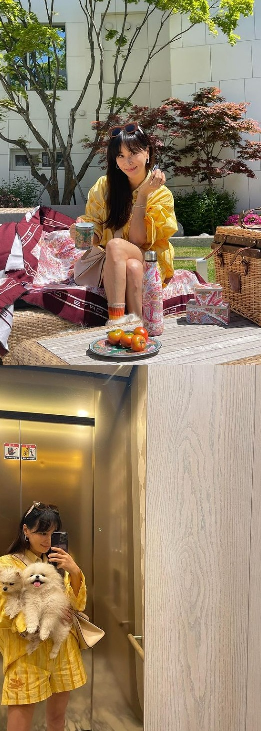 사진 속 고소영은 반려견들과 함께 봄나들이를 즐기고 있다. 봄 날씨에 어울리는 화사한 나들이 룩과 럭셔리한 피크닉 용품들이 눈길을 사로잡는다.