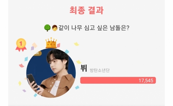 방탄소년단(BTS) 뷔가 '같이 나무 심고 싶은 아이돌' 1위에 선정되며 인기를 빛냈다.
