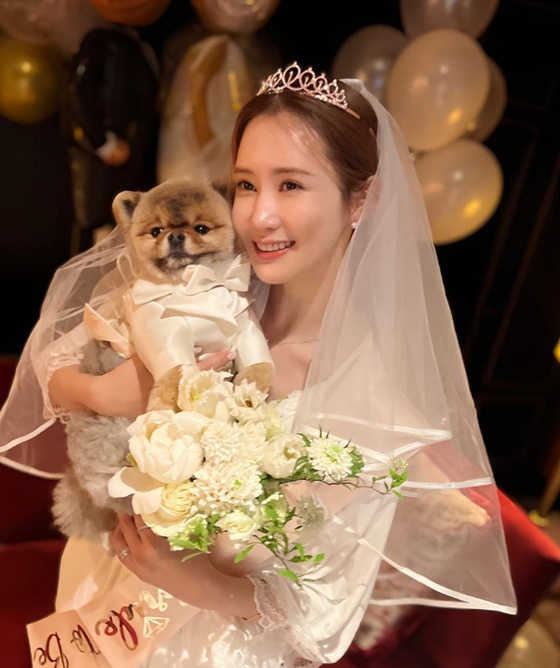 이다해는 면사포와 티아라를 쓴 채 청순한 미소를 짓고 있다. 품에 안긴 반려견도 하얀색 옷을 입고 있어 눈길을 끌었다.