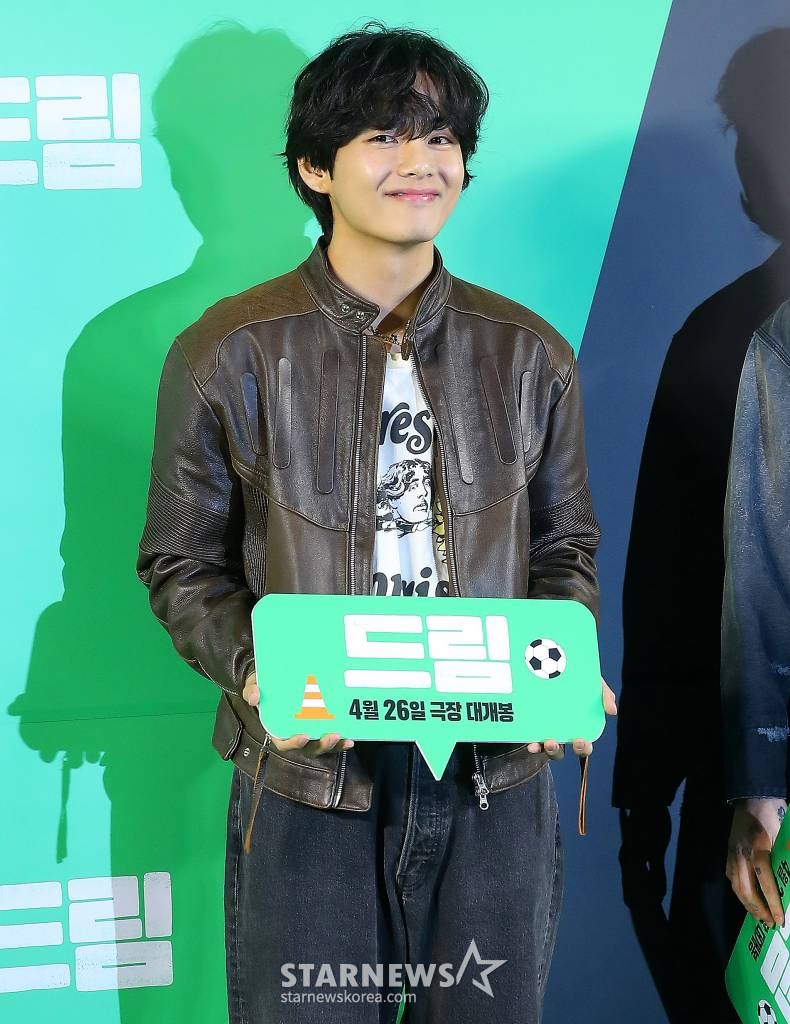 뷔는 지난 4월 24일 서울 삼성동 메가박스에서 열린 영화 '드림' 시사회에 멤버 정국과 함께 참석해 뜨거운 플래시 세레를 받았다. 시사회장을 가득 채운 팬들도 뷔의 등장을 열렬한 환호로 맞이했다.