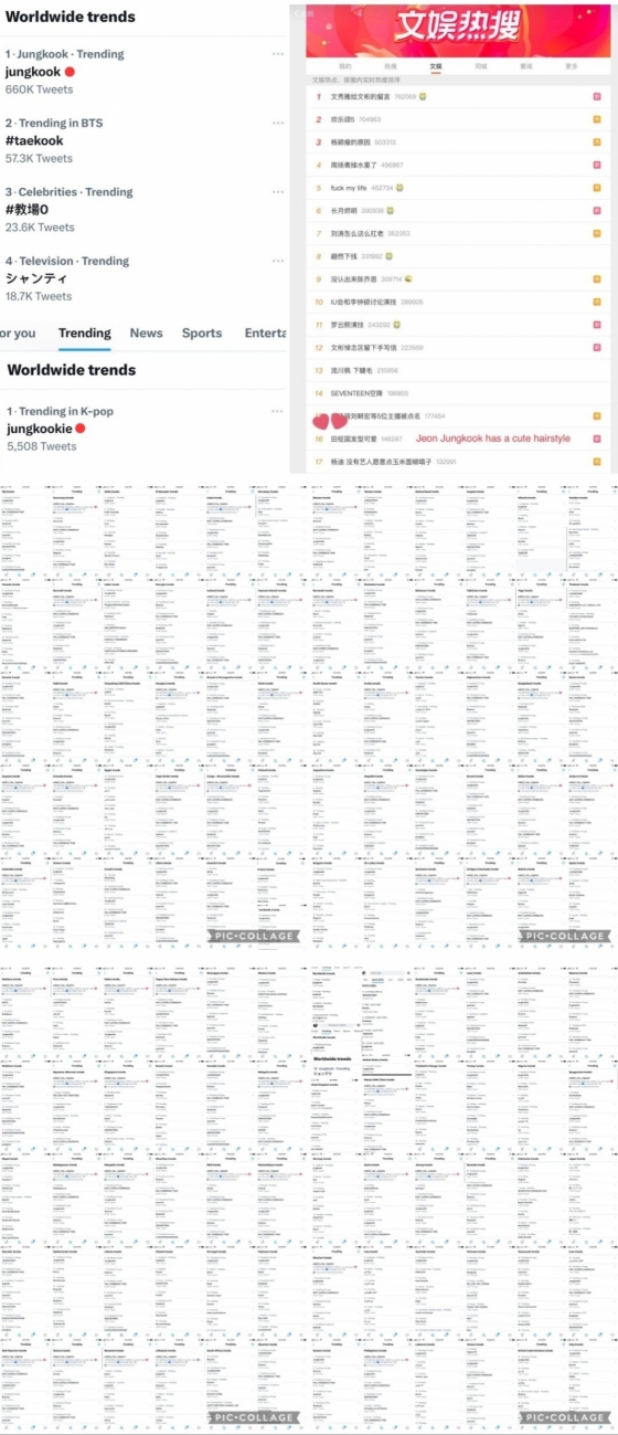 이와 함께 중국 웨이보에서도 '전정국 귀여운 헤어스타일'이 16위로 트렌딩됐다.