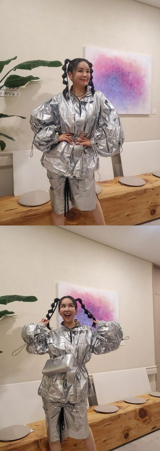사진 속 장영란은 화려한 은색 의상을 입고 여러 가지 포즈를 취하고 있다. 특유의 밝고 통통 튀는 매력이 보는 이들을 웃음 짓게 했다.