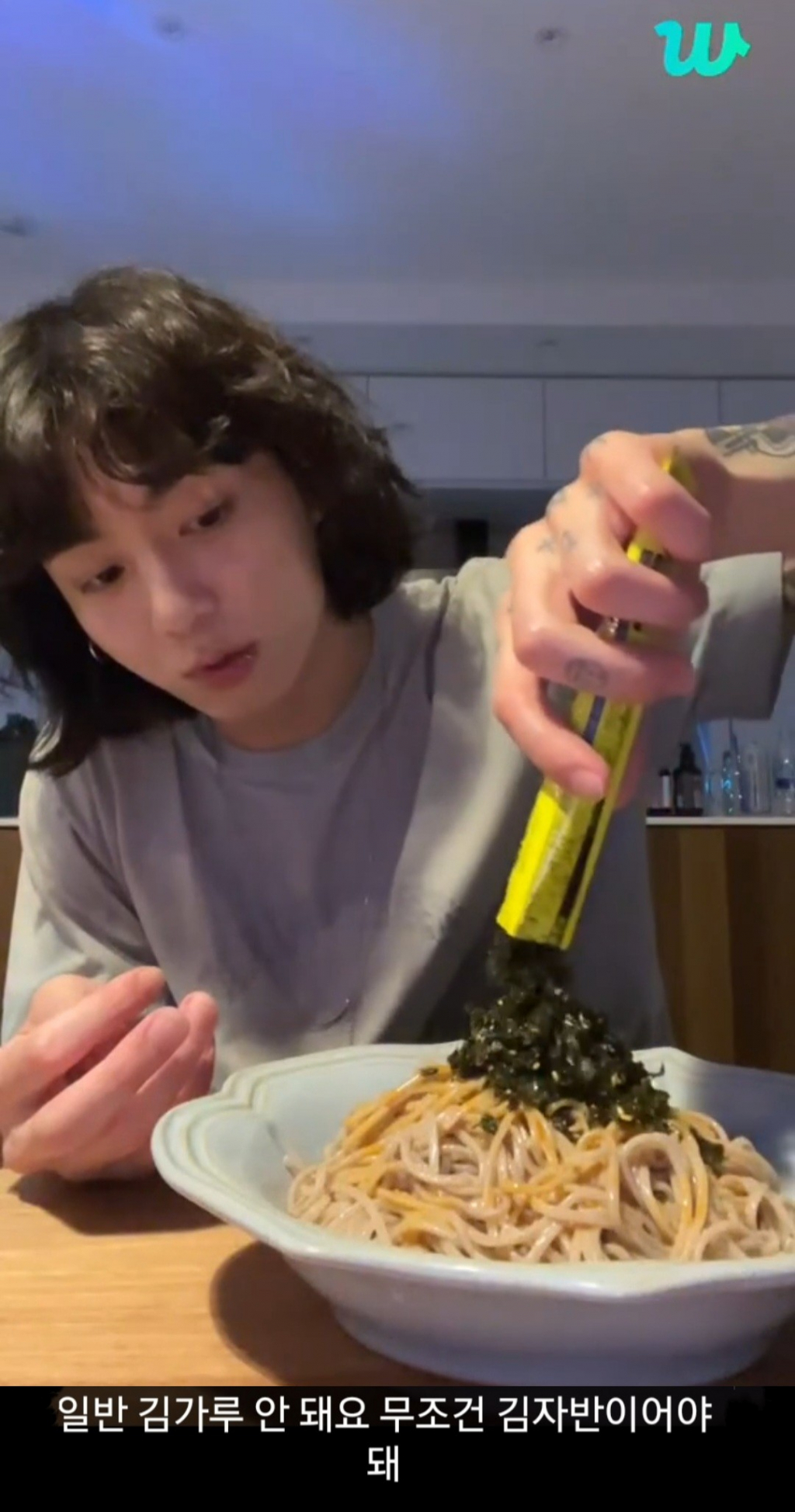 정국은 해당 방송에서 '꼬소한 불마요 들기름 막국수'의 요리 재료로 김가루가 아닌 김자반을 사용하라고 신신당부했다.