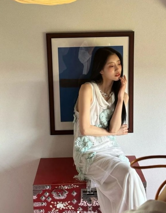공개된 사진 속 이미주는 어깨선이 드러나는 흰색드레스를 입고 손으로 얼굴을 만지는 모습이 담겼다. 이미주는 붉은 볼 터치와 은은한 미소로 몽환적인 이미지를 뽐내 네티즌의 이목을 끌었다.