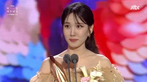 이어 '일타스캔들'로 TV부문 여자 신인상을 수상한 노윤서는 "'일타스캔들' 촬영하면서 행복했고 배운점도 많았다. 캐릭터가 많은 사랑을 받아서 행복했다. 배우 일을 시작하면서 만난 모든 인연이 소중한데 그 분들 덕에 제가 이 자리에 있을 수 있는 것 같다"라며 "전도연 선배님, 정경호 선배님 너무 존경한다. 우림고 친구들과 스태프분들 덕에 너무 든든했고 감사하다"고 말했다.