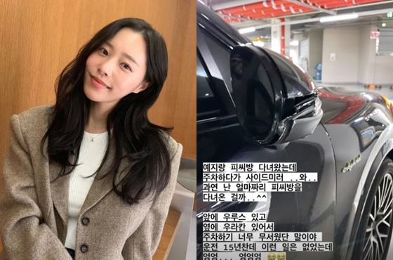 이솔이는 2일 자신의 인스타그램에 사이드 미러가 부숴진 차량 사진을 게재했다. 지하 주차장에서 주차를 하던 중 사고가 난 것.