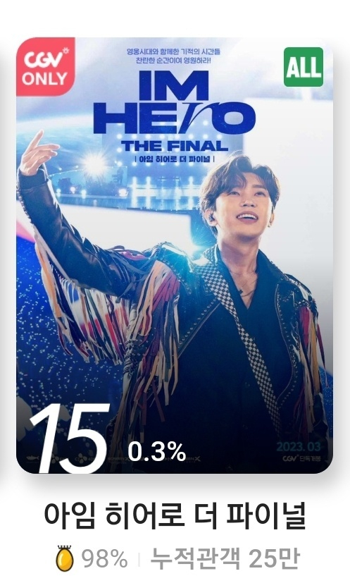 가수 임영웅의 공연 실황을 담은 영화 '아임 히어로 더 파이널'이 누적관객 25만 명을 달성하며 또 하나의 '영웅신화'를 썼다.