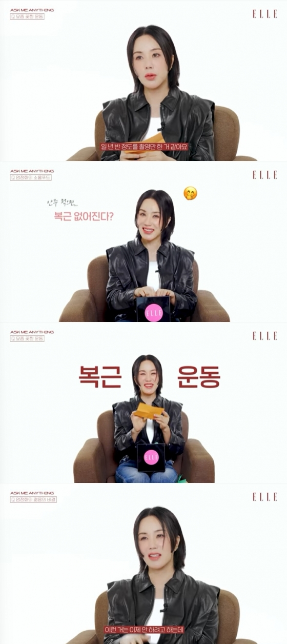 이날 엄정화는 자신의 복근을 자랑하며 "조명 때문에 내가 열심히 만든 복근이 잘 안 보이더라. 그래서 음영을 그려야 할 것 같다"고 말했다. 이어 "요즘 꽂힌 운동은 복근 운동이다. 1년 반 정도 촬영만 한 것 같다. 다시 근육을 찾기 위해 열심히 운동하고 있다"고 밝혔다.