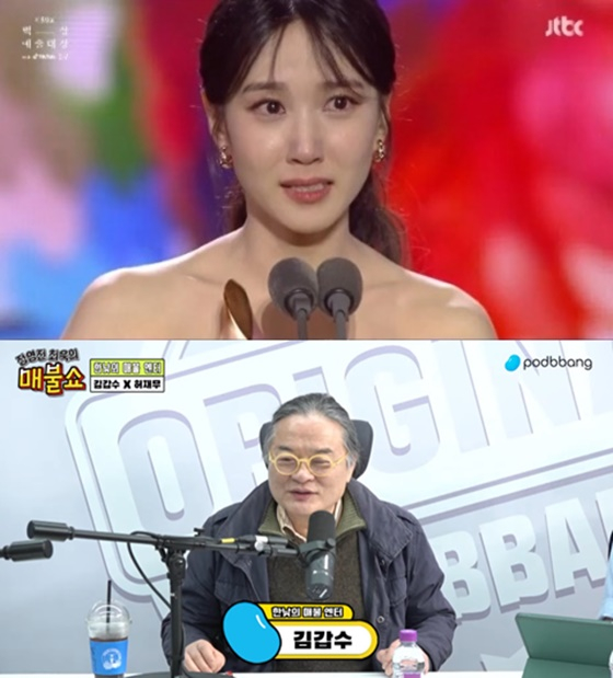 이날 최욱은 게스트 김갑수의 등장에 "(김갑수가) 박은빈의 수상 소감에 대해 지적했다. '울지 좀 마라', '감정 과잉이다', '인사 좀 그만해라' 등 비판을 해서 난리가 났다"고 말했다.
