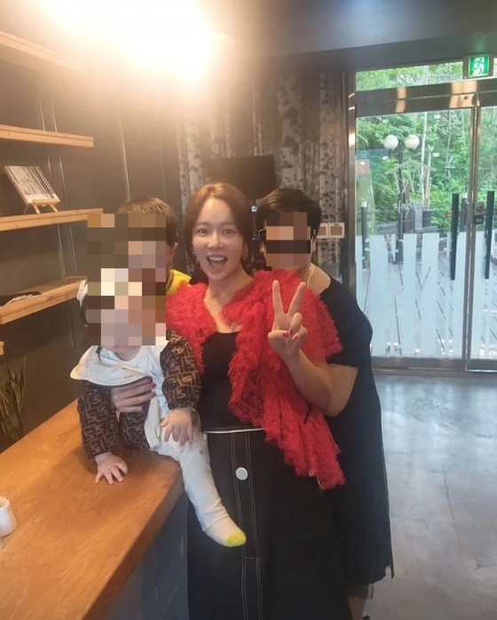 배우 황정음이 두 아들과 함께 일상을 보내며 행복한 미소를 지었다.