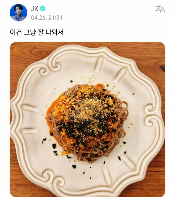 정국은 지난 3월 팬 커뮤니티 위버스를 통해 '불그리 레시피'라는 글을 게재했다.