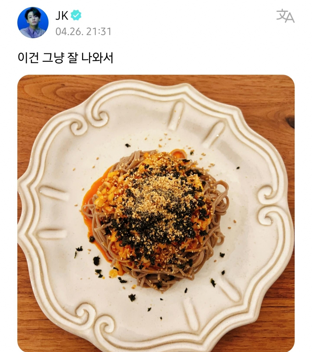 정국은 "이거 정말 맛있다. 아미들도 먹어보라고…난 방금 먹었다…"라며 '불그리 레시피'를 꼭 먹어 보길 팬들에게 적극 권했다.