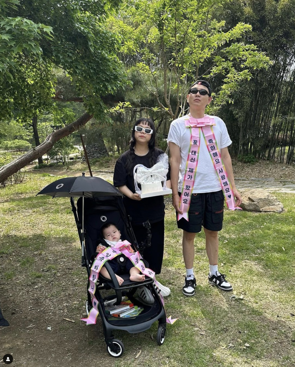 공개된 사진 속 제이쓴은 아들 준범이와 인간 화환으로 변신했다. 홍현희는 케이크를 들고 새침한 표정을 지었다. 제이쓴은 '꽃 대신 제가 왔어요 축하해요 사랑해요'라고 적힌 리본을 공개해 웃음을 자아냈다.