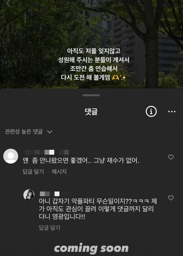 한 네티즌은 "얜 좀 안 나왔으면 좋겠어..그냥 재수가 없어"라고 댓글을 달았다.