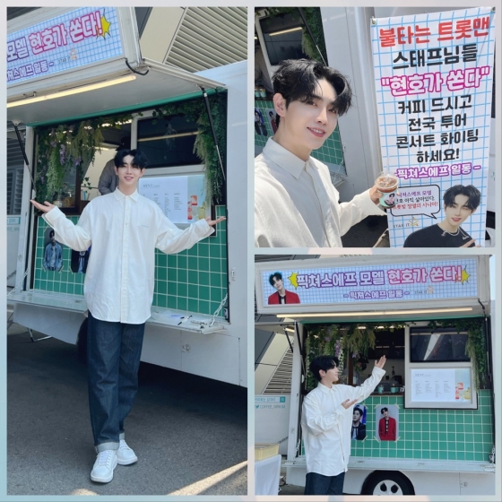 박현호는 지난 13일 송도 컨벤시아에서 진행된 '불타는 트롯맨' 전국 투어 콘서트-인천 공연 전, 자신이 모델로 나서는 갤러리 오거나이저 그룹 '픽쳐스에프'와 함께 출연진과 스태프들을 위한 커피차를 선물했다.