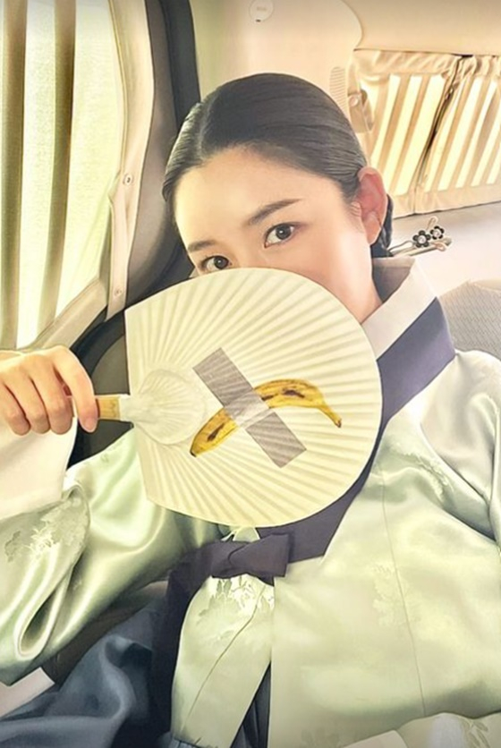 또한 전통적인 부채를 들고 얼굴을 가리기도 했다. 그러나 청초하고 청순한 분위기로 눈길을 끌었다. 커다란 이목구비도 포착됐다.