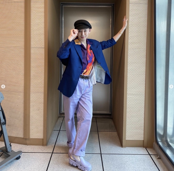 공개된 사진 속 김호영은 베레모에 파란색 재킷을 입고 포즈를 취했다. 김호영은 재킷 안 컬러풀한 셔츠로 시선을 끌었다.