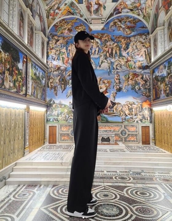 누군가가 찍어준 듯한 사진에서 조예영은 리움미술관 내부에서 포즈를 취하고 있다.