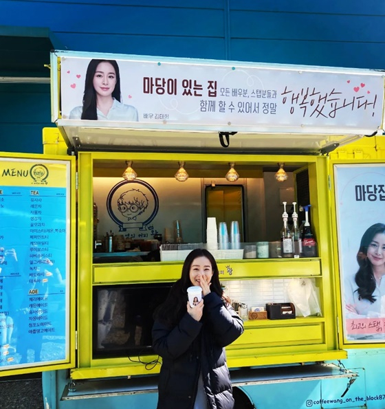 배우 김태희가 남편인 가수 겸 배우 비가 보낸 커피차를 인증했다.
